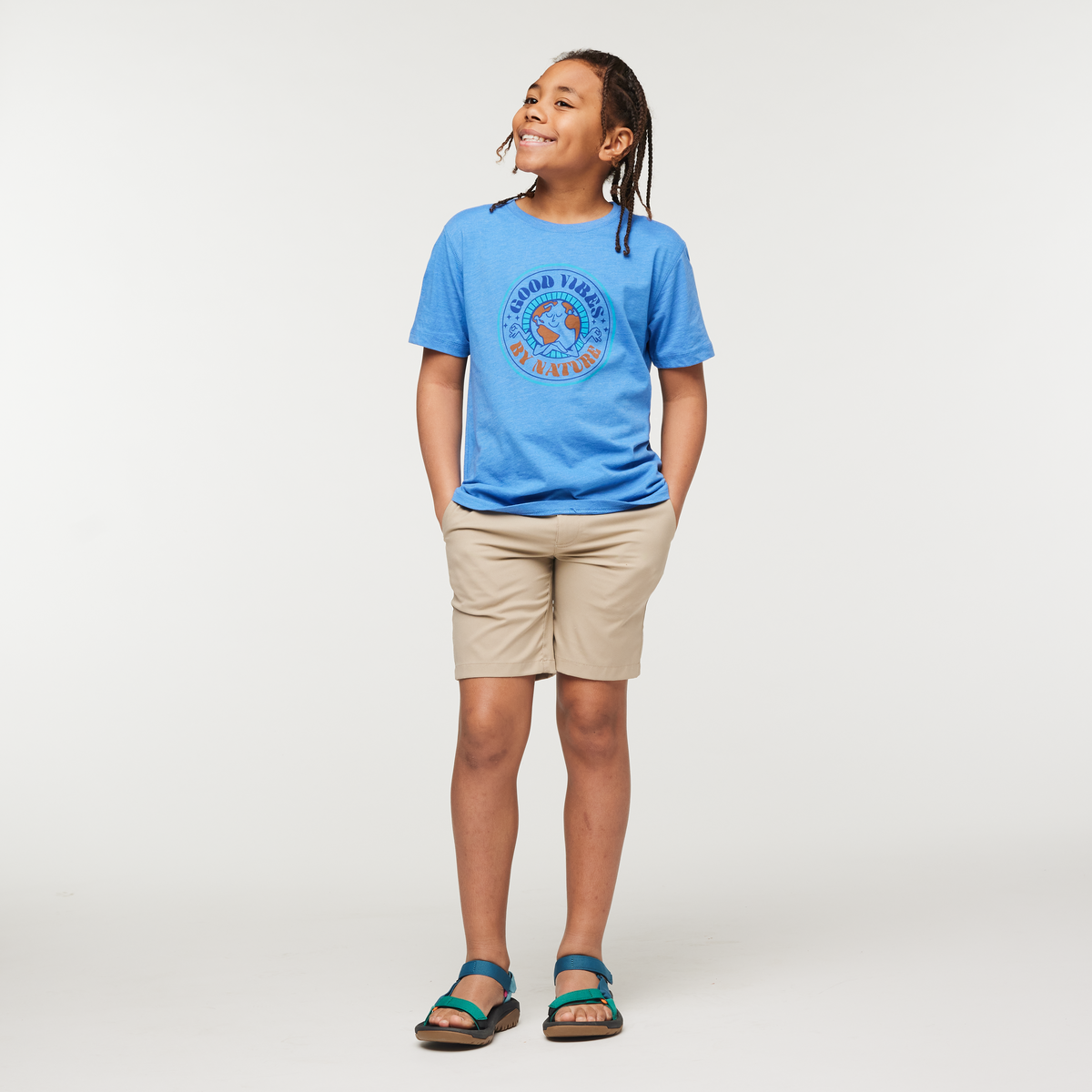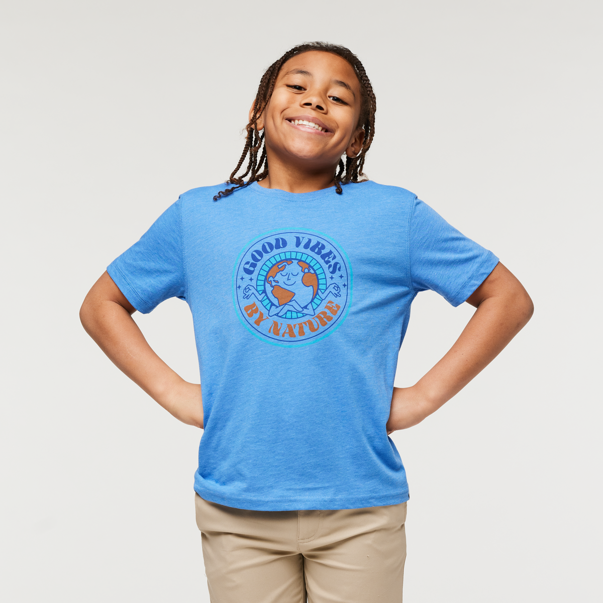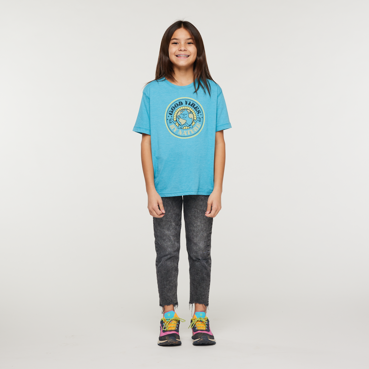 Designed with that super soft, worn in feel, the Good Vibes Kids’ tee features cover stitching and a screen printed label for comfortable wear. Perfect for hikes, travel, and play.