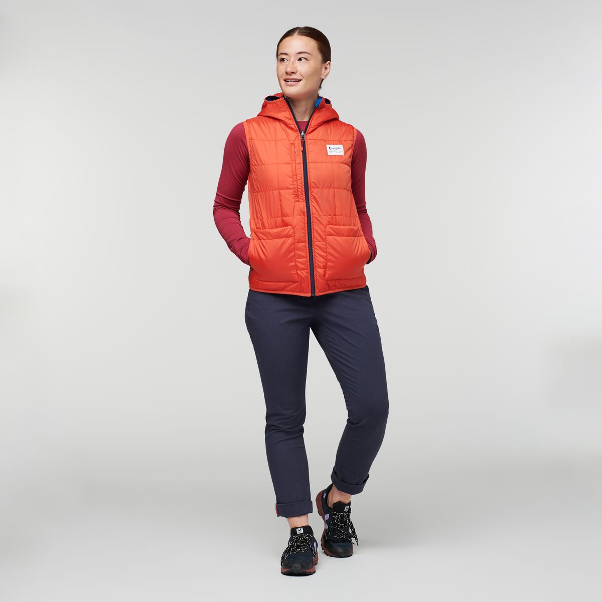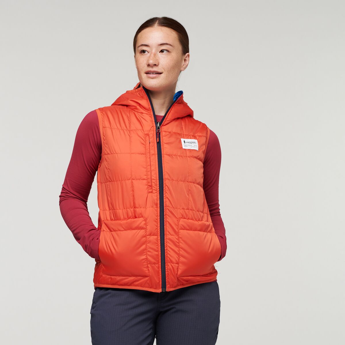 Made from recycled polyester and repurposed taffeta, the Cálido Hooded Vest doesn’t just bring the heat it brings the sustainability, too. This versatile, fully reversible staple style is packable and comes in creative color combos.