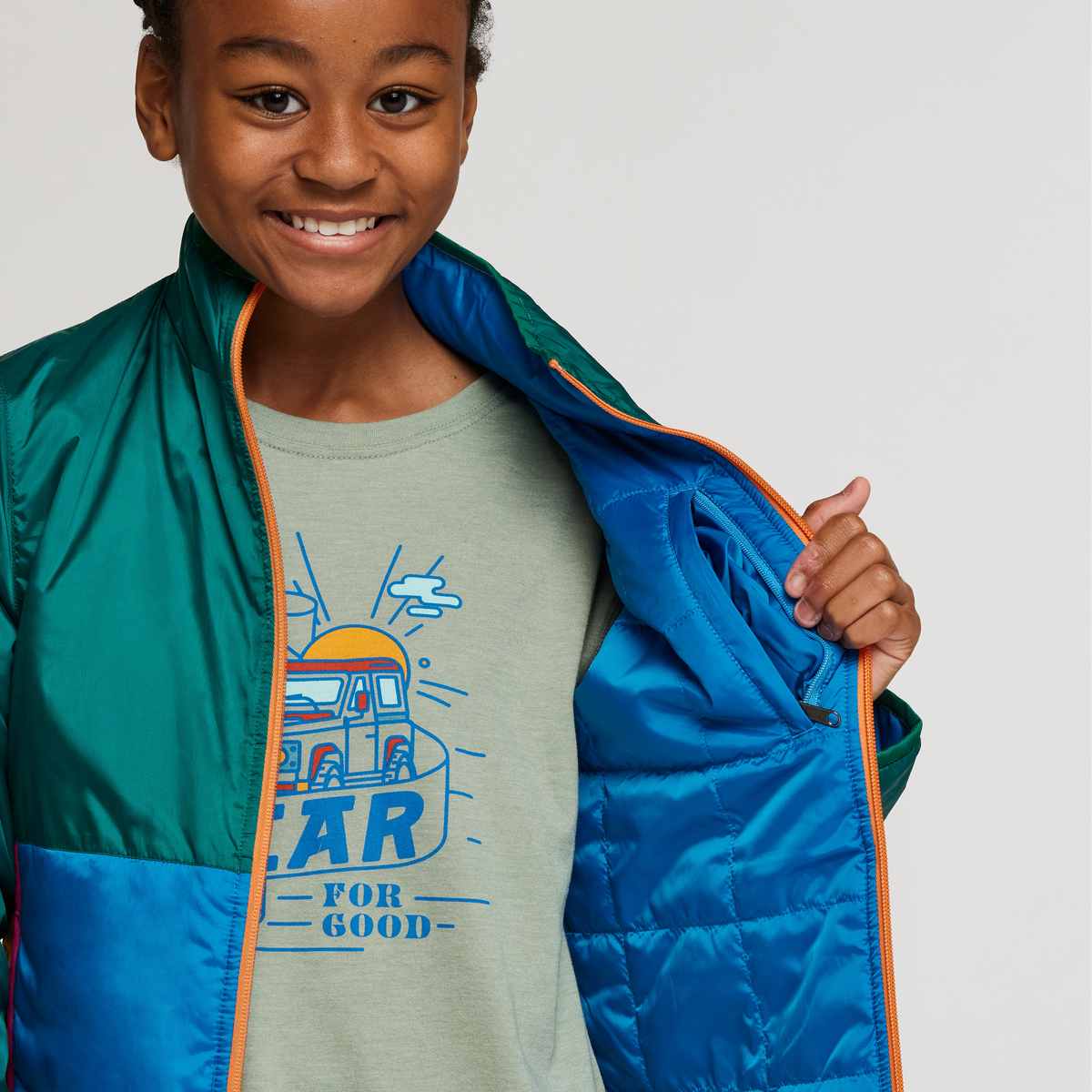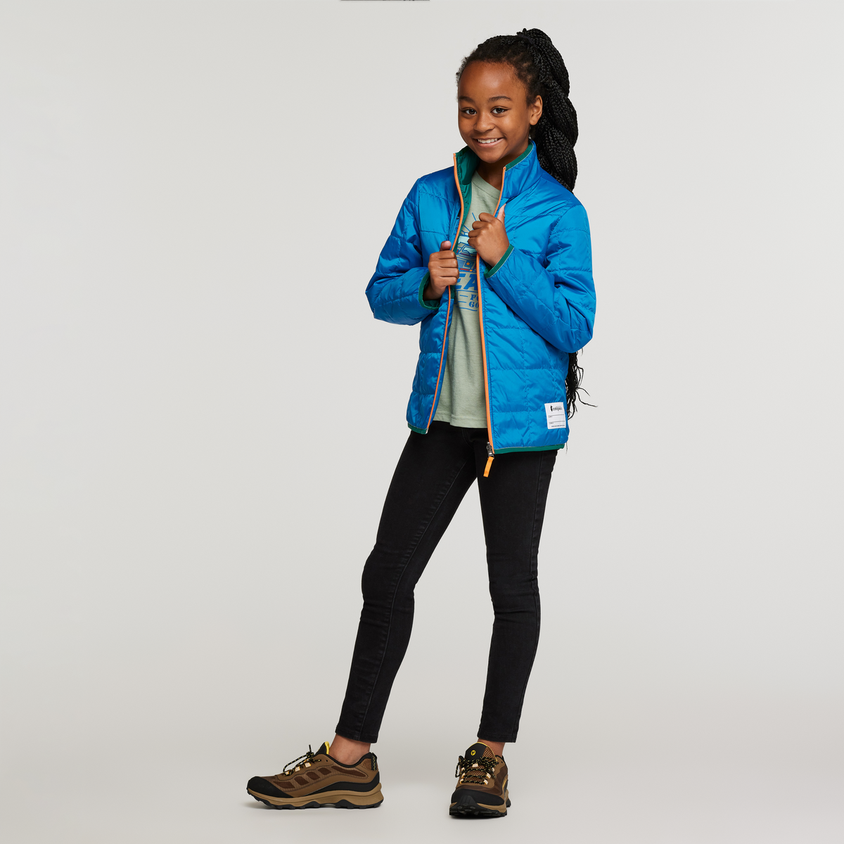 The Kids’ Teca Cálido Jacket combines toasty insulation, lightweight materials, and a repurposed polyester taffeta shell for adventure ready warmth. This versatile layer features a reflective logo for safety and an interior label where your “Little Llama” can write their name. Kids will also love being able to switch up their look to suit the adventure of the day thanks to a fully reversible design. This style is unisex.