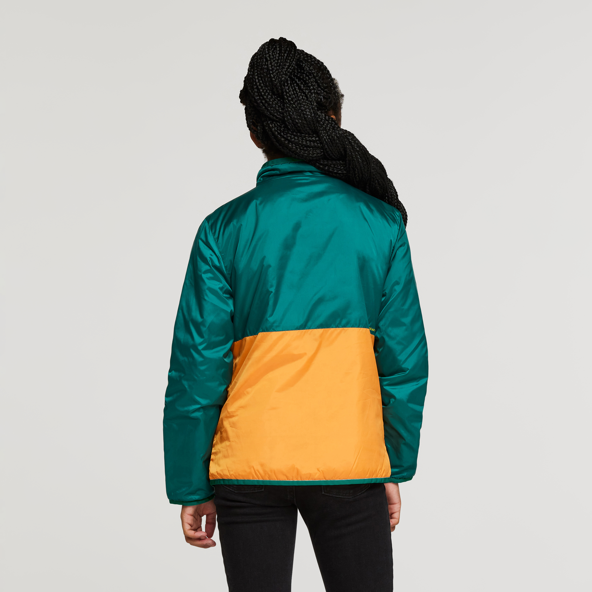 Recycled synthetic insulation on one side, and repurposed polyester taffeta on the other, this layer delivers two looks in one.